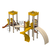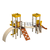 Комплекс включает в себя следующие элементы: две башни, соединенные дополнительной платформой и волнистым мостиком с перилами, две горки - металлическая и пластиковая спиральная, лестница и набор различных лазалок - зигзаг, трап и мост.