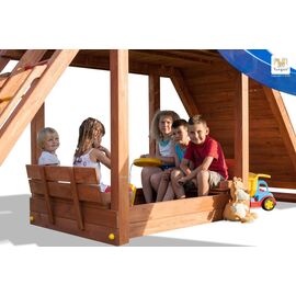 Благодаря прилагаемым аксессуарам игровая площадка становится еще более привлекательной для детей. Множество элементов и аксессуаров для игры позволит малышам отправиться в море воображения. Благодаря им малыши на время превратятся в отважных моряков. TREEHOUSE – это воплощение мечты каждого молодого человека, а для родителей возможность немного отдохнуть.